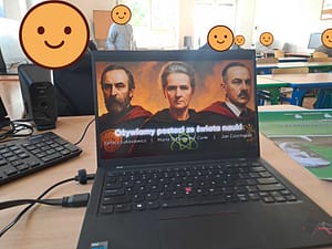 Spotkaliśmy się z uczniami klas 6–8 w Szkole Podstawowej w Kątach (gm. Kołbiel) w ramach projektu organizowanego przez Gminną Bibliotekę Publiczną w Kołbieli. Zajęcia poświęcone były trzem niezwykłym postaciom polskiej nauki – Marii Skłodowskiej-Curie, Janowi Czochralskiemu i Ignacemu Łukasiewiczowi. Choć tematyka nie należała do najłatwiejszych, udało nam się ją oswoić przy pomocy grafik, filmów, narzędzi AI i… dobrej zabawy!