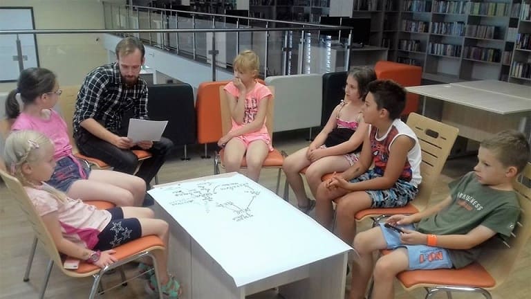 Mobilne gry miejskie były też istotnym tematem konferencji Bibliokreacje 3.0, którą zorganizowała wałbrzyska Biblioteka „Pod Atlantami”. To tam odbył się wakacyjny cykl warsztatów dla młodzieży, podczas których projektowano gry. Efektem są tzw. „Nowe legendy Wałbrzycha„, trzy gry dostępne w aplikacji Action Track. O konferencji możecie przeczytać tutaj, a o samym projekcie znajdziecie więcej na stronach biblioteki. Nad grami pracowały naprawdę małe dzieci – wystarczy, że zerkniecie na zdjęcia: