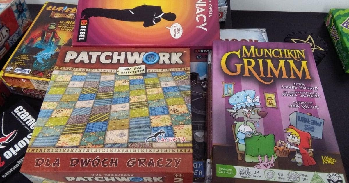 Gry Patchwork i MunchkinSzkolenie z gier planszowych dla bibliotekarzyGra planszowa - budowanie koleiRęka podrzucająca kostki