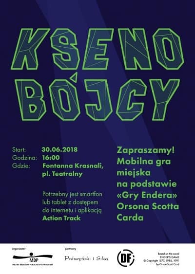 Opis: Fani sci-fi nie mogą ominąć gry miejskiej inspirowanej „Grą Endera”. Podobnie jak bohaterowie książki Orsona Scotta Carda zostaną wcieleni w szeregi Szkoły Bojowej stojącej na straży naszej planety. Tylko od ich decyzji będzie zależał los gatunków i galaktyki. Co ciekawe, wybory, których dokonują gracze mogą zaprowadzić ich do innych zakończeń tej historii.