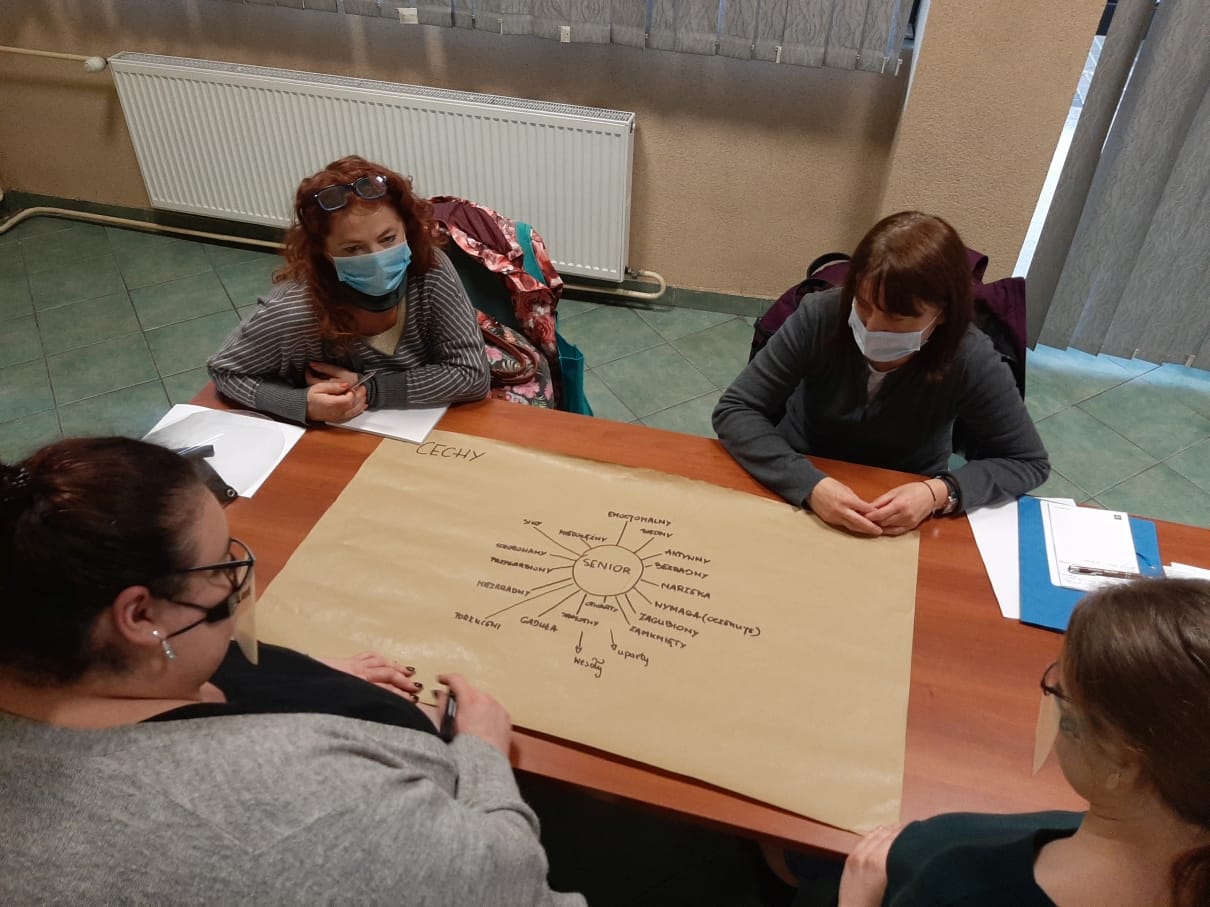 Uczestnicy szkolenia zastanawiali się nad własną motywacją – chcą, czy muszą pracować z seniorami? Skonfrontowali także własną wiedzę i opinie na temat osób starszych (m.in. ich potrzeb) z wynikami badań oraz danymi statystycznymi. Przyjrzeliśmy się także obowiązującym w Polsce regulacjom prawnym i politykom dotyczącym osób starszych. Następnie „umiejscowiliśmy” współczesnych seniorów w teorii pokoleń. Doprowadziło to do pewnych uogólnień, które oczywiście nie oddają w pełni rzeczywistości, dają jednak dobrą bazę do projektowania oferty. Jakie media są najważniejsze dla seniorów? Z czego to wynika? Czy ta wiedza w czymś pomaga bibliotekarzowi? Przyglądając się kolejnym pokoleniom (X, Y, Z, Alfa) uczestnicy szkolenia zastanawiali się, jakie relacje pomiędzy nimi zachodzą oraz jakie różnice są widoczne.