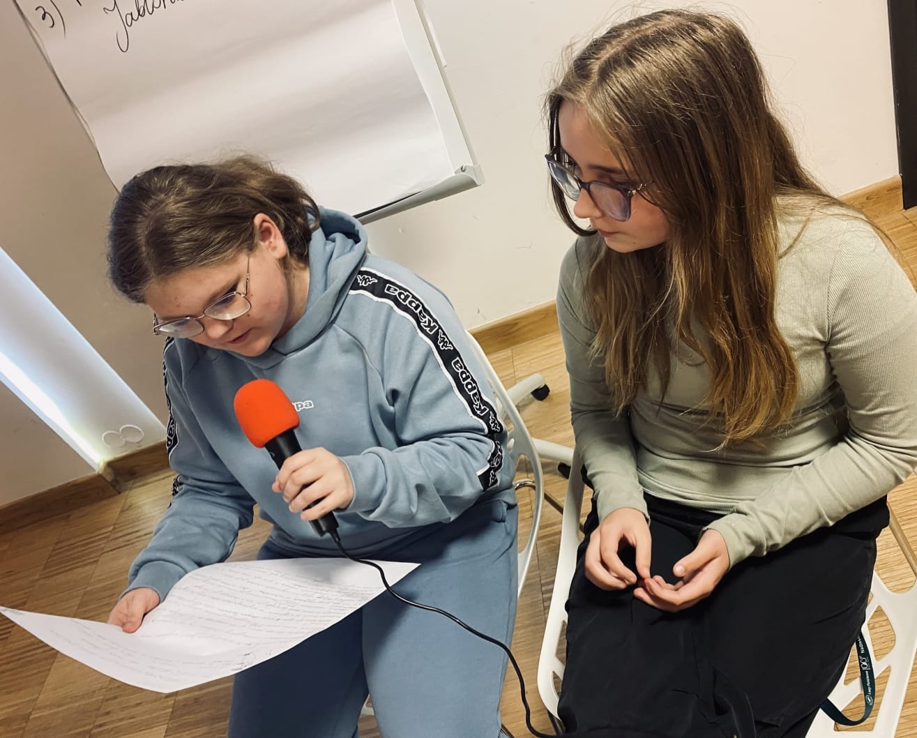 W trakcie warsztatów nie zabrakło eksperymentowania z dźwiękiem. Młodzież, wykorzystując własne głosy oraz stojące na szkolnym korytarzu pianino, nagrała oryginalne jingle do każdego z podcastów. Następnie każda grupa przygotowała i nagrała krótką próbkę swojego podcastu. Efektem były trzy unikalne mini-produkcje audio.